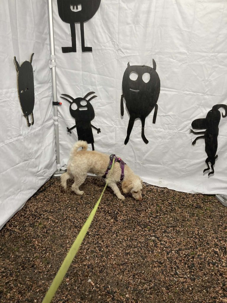 Mökillä harrastetaan myös mökkiagilityä muutaman renkaan, aidan ja tunnelin kanssa. Kesällä myös veneillään ja Hilla nauttii uusiin paikkoihin tutustumisista ja saariston vaihtuvista maisemista.